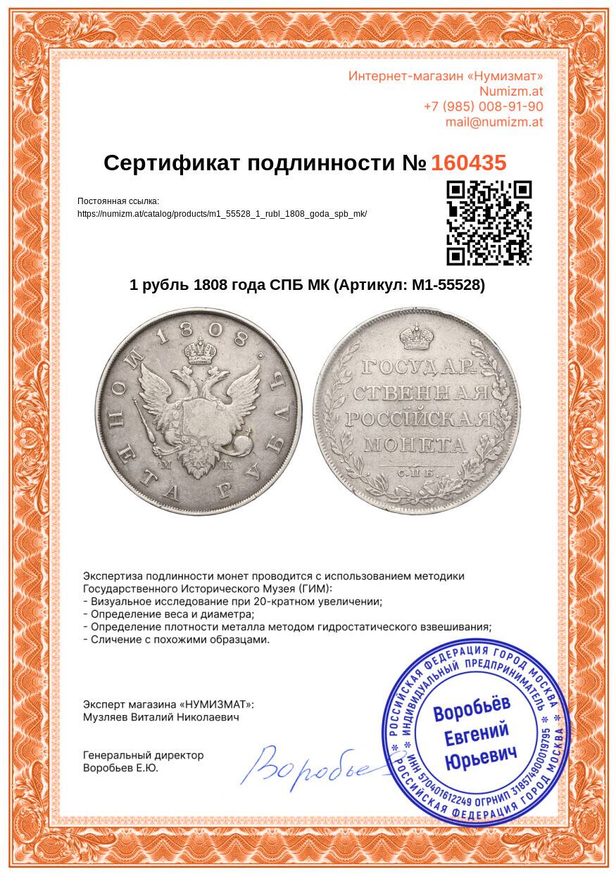 Купить 1 рубль 1808 года СПБ МК по привлекательной цене можно в нашем интернет-магазине — Вам достаточно оформить заказ на сайте. Все монеты, представленные в каталоге, находятся в наличии на нашем складе.