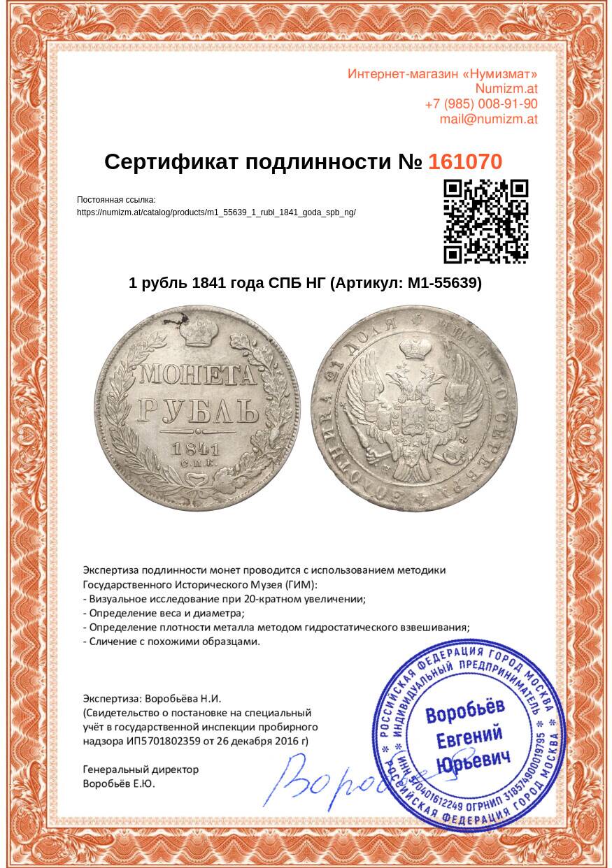 Купить 1 рубль 1841 года СПБ НГ по привлекательной цене можно в нашем интернет-магазине — Вам достаточно оформить заказ на сайте. Все монеты, представленные в каталоге, находятся в наличии на нашем складе.
