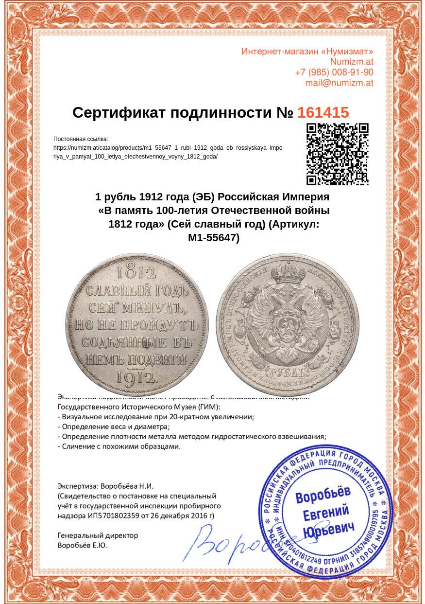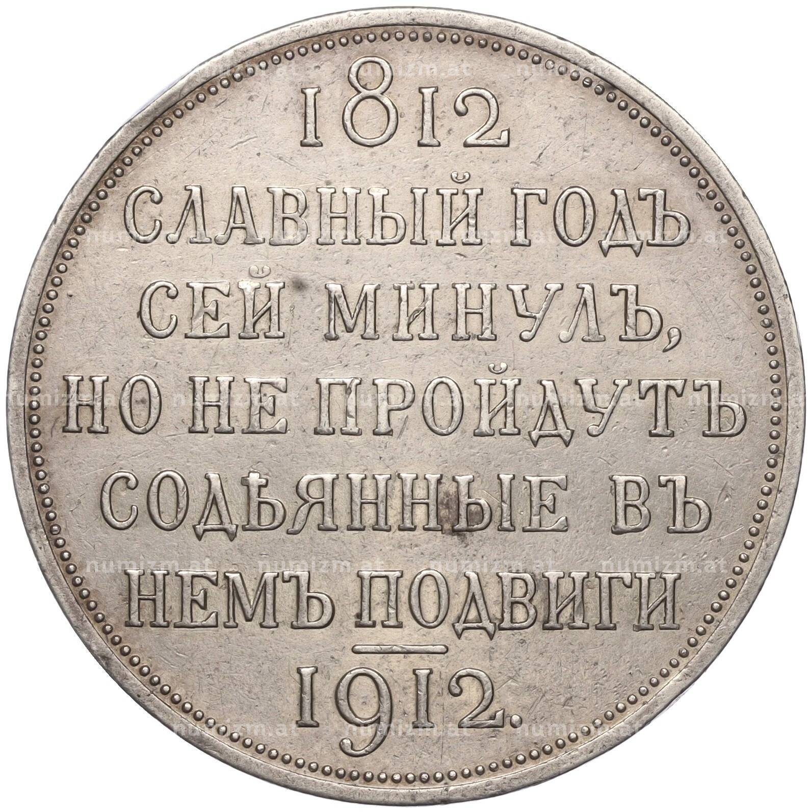 Купить 1 рубль 1912 года (ЭБ) Российская Империя «В память 100-летия Отечественной войны 1812 года» (Сей славный год) по привлекательной цене можно в нашем интернет-магазине — Вам достаточно оформить заказ на сайте. Все монеты, представленные в каталоге, находятся в наличии на нашем складе.