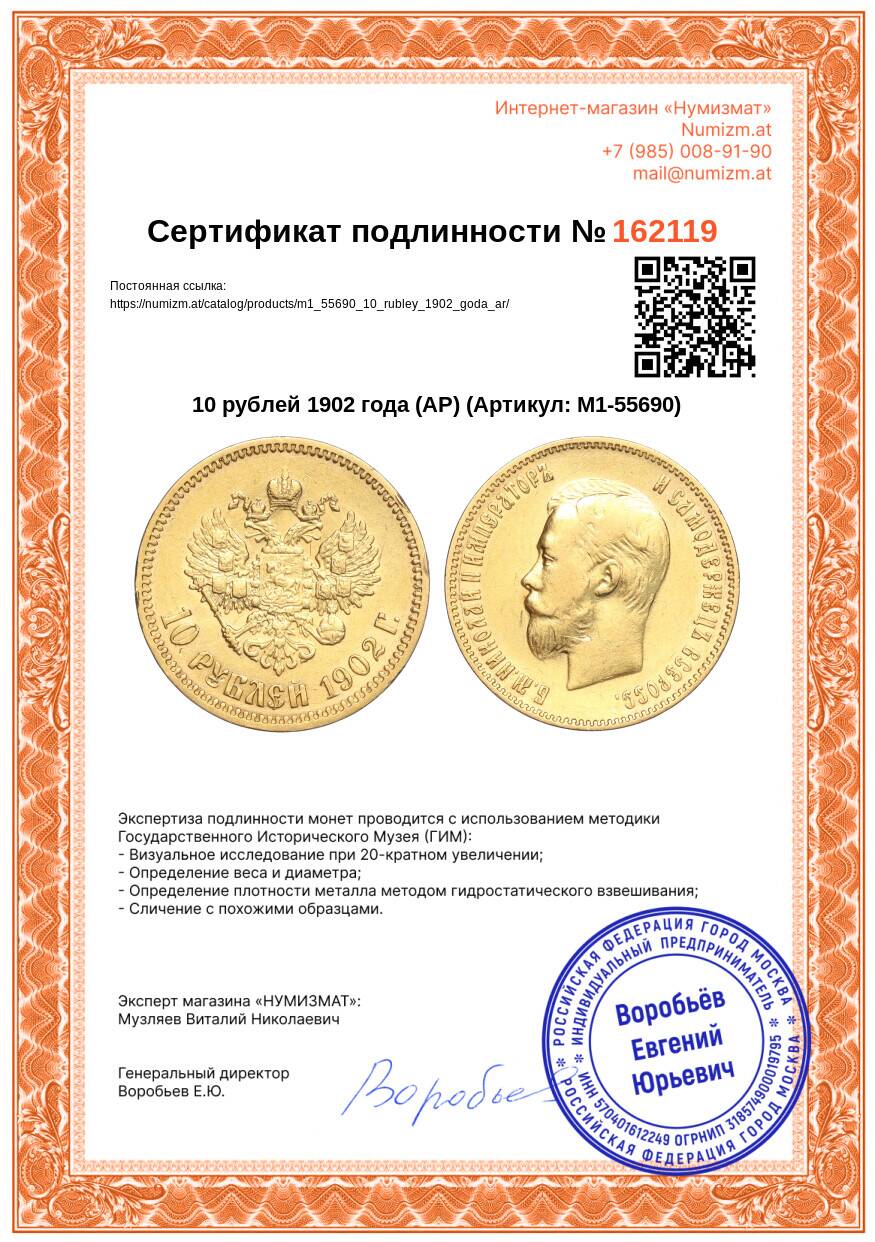 Купить 10 рублей 1902 года (АР) по привлекательной цене можно в нашем интернет-магазине — Вам достаточно оформить заказ на сайте. Все монеты, представленные в каталоге, находятся в наличии на нашем складе.