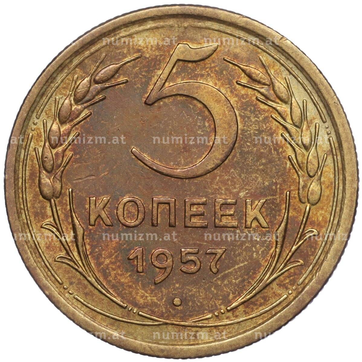 Купить 5 копеек 1957 года по привлекательной цене можно в нашем интернет-магазине — Вам достаточно оформить заказ на сайте. Все монеты, представленные в каталоге, находятся в наличии на нашем складе.
