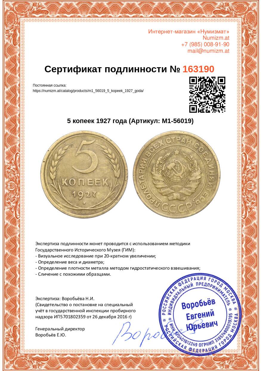Купить 5 копеек 1927 года по привлекательной цене можно в нашем интернет-магазине — Вам достаточно оформить заказ на сайте. Все монеты, представленные в каталоге, находятся в наличии на нашем складе.