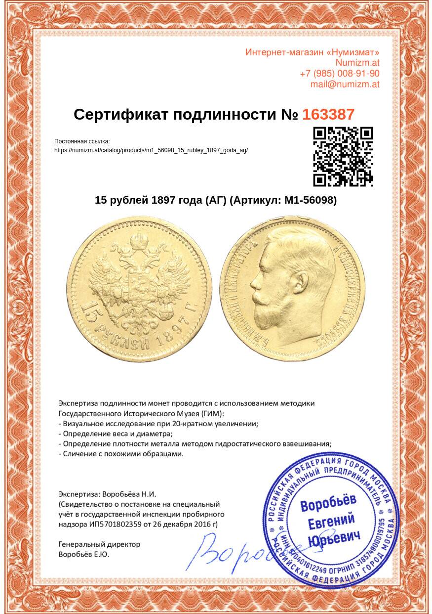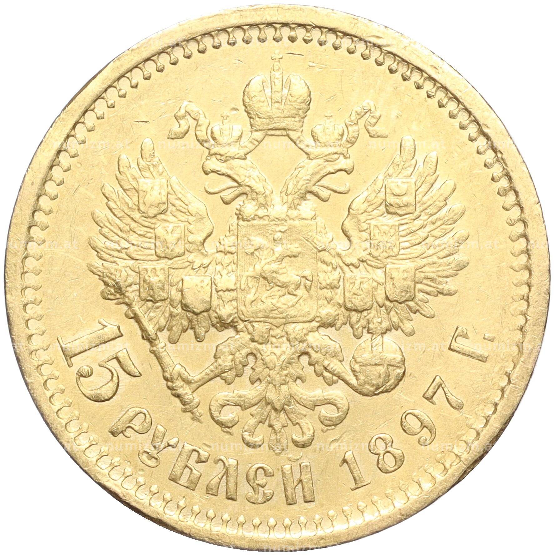 Купить 15 рублей 1897 года (АГ) по привлекательной цене можно в нашем интернет-магазине — Вам достаточно оформить заказ на сайте. Все монеты, представленные в каталоге, находятся в наличии на нашем складе.