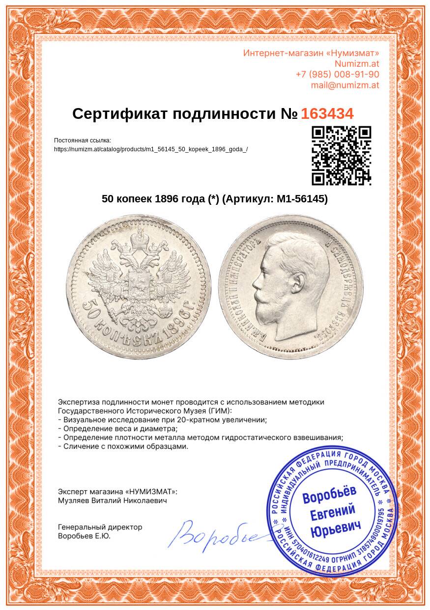 20.01.2025Интернет магазин «Нумизмат» предлагает приобрести 50 копеек 1896 года (*).