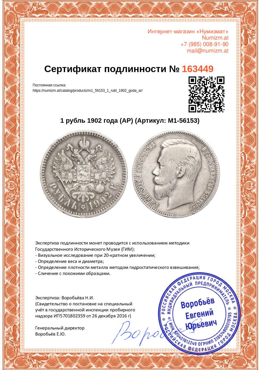 Купить 1 рубль 1902 года (АР) по привлекательной цене можно в нашем интернет-магазине — Вам достаточно оформить заказ на сайте. Все монеты, представленные в каталоге, находятся в наличии на нашем складе.