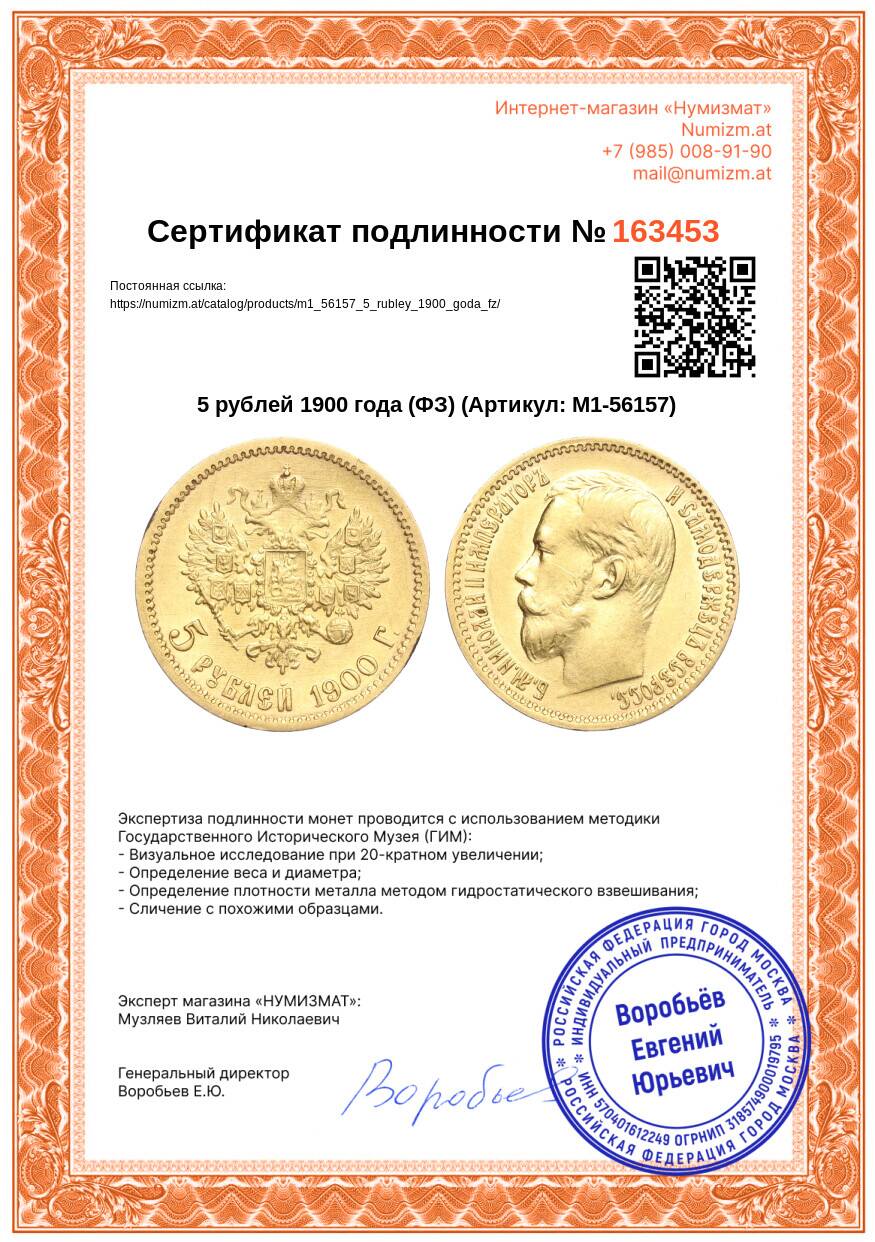 Купить 5 рублей 1900 года (ФЗ) по привлекательной цене можно в нашем интернет-магазине — Вам достаточно оформить заказ на сайте. Все монеты, представленные в каталоге, находятся в наличии на нашем складе.