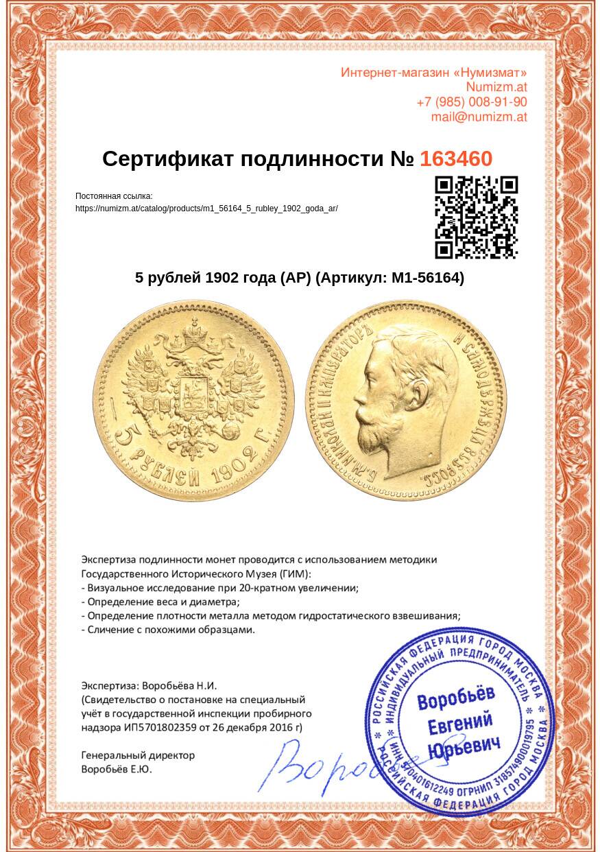 Купить 5 рублей 1902 года (АР) по привлекательной цене можно в нашем интернет-магазине — Вам достаточно оформить заказ на сайте. Все монеты, представленные в каталоге, находятся в наличии на нашем складе.