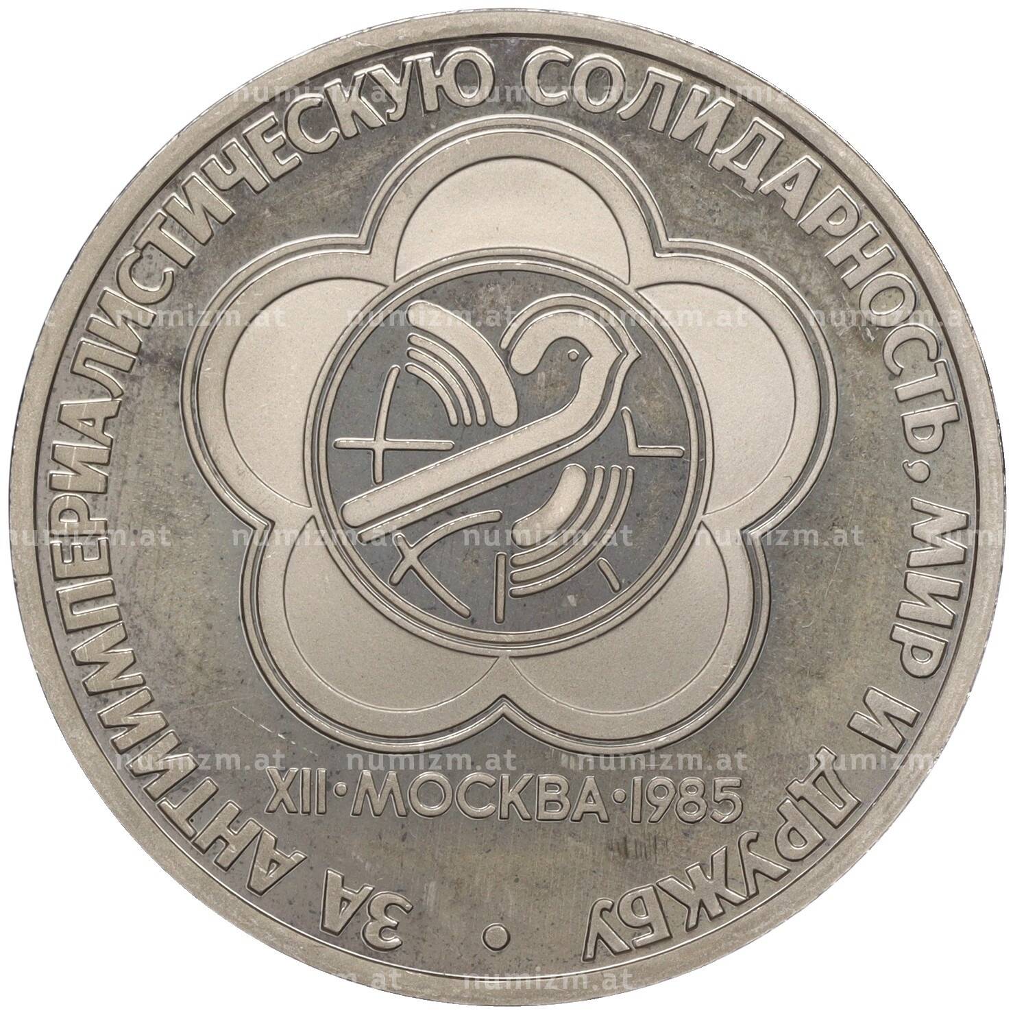 Купить 1 рубль 1985 года «XII Международный фестиваль молодежи и студентов в Москве» (Новодел) по привлекательной цене можно в нашем интернет-магазине — Вам достаточно оформить заказ на сайте. Все монеты, представленные в каталоге, находятся в наличии на нашем складе.