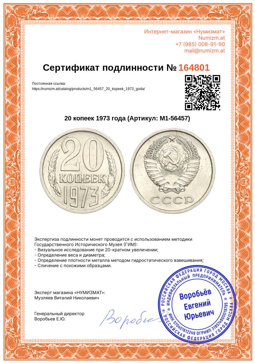 Купить 20 копеек 1973 года по привлекательной цене можно в нашем интернет-магазине — Вам достаточно оформить заказ на сайте. Все монеты, представленные в каталоге, находятся в наличии на нашем складе.