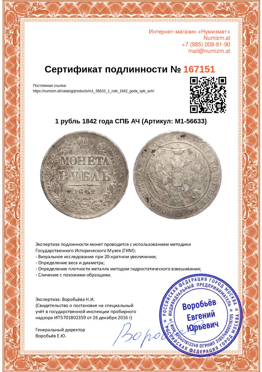 Купить 1 рубль 1842 года СПБ АЧ по привлекательной цене можно в нашем интернет-магазине — Вам достаточно оформить заказ на сайте. Все монеты, представленные в каталоге, находятся в наличии на нашем складе.