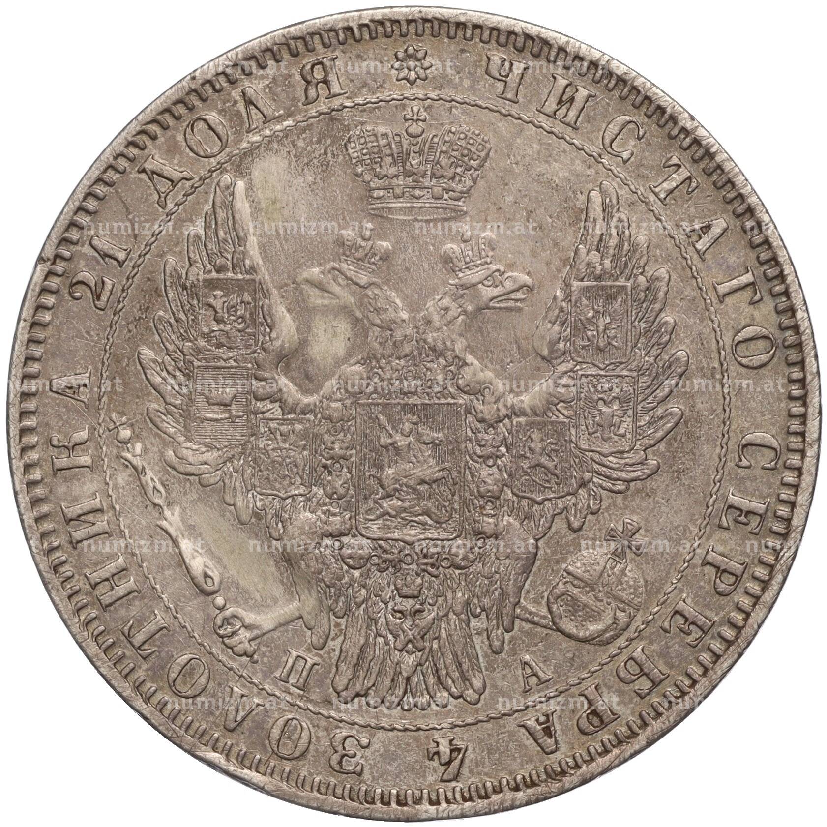 20.01.2025Интернет магазин «Нумизмат» предлагает приобрести 1 рубль 1850 года СПБ ПА.
