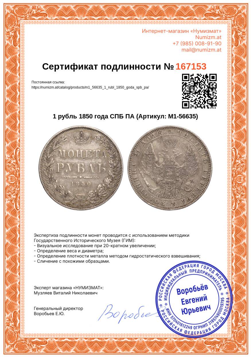 Купить 1 рубль 1850 года СПБ ПА по привлекательной цене можно в нашем интернет-магазине — Вам достаточно оформить заказ на сайте. Все монеты, представленные в каталоге, находятся в наличии на нашем складе.