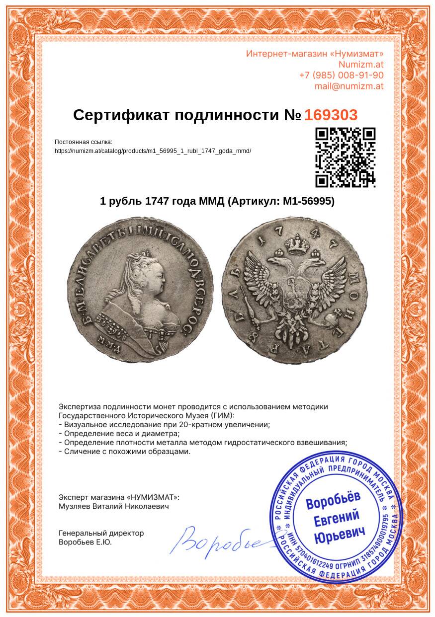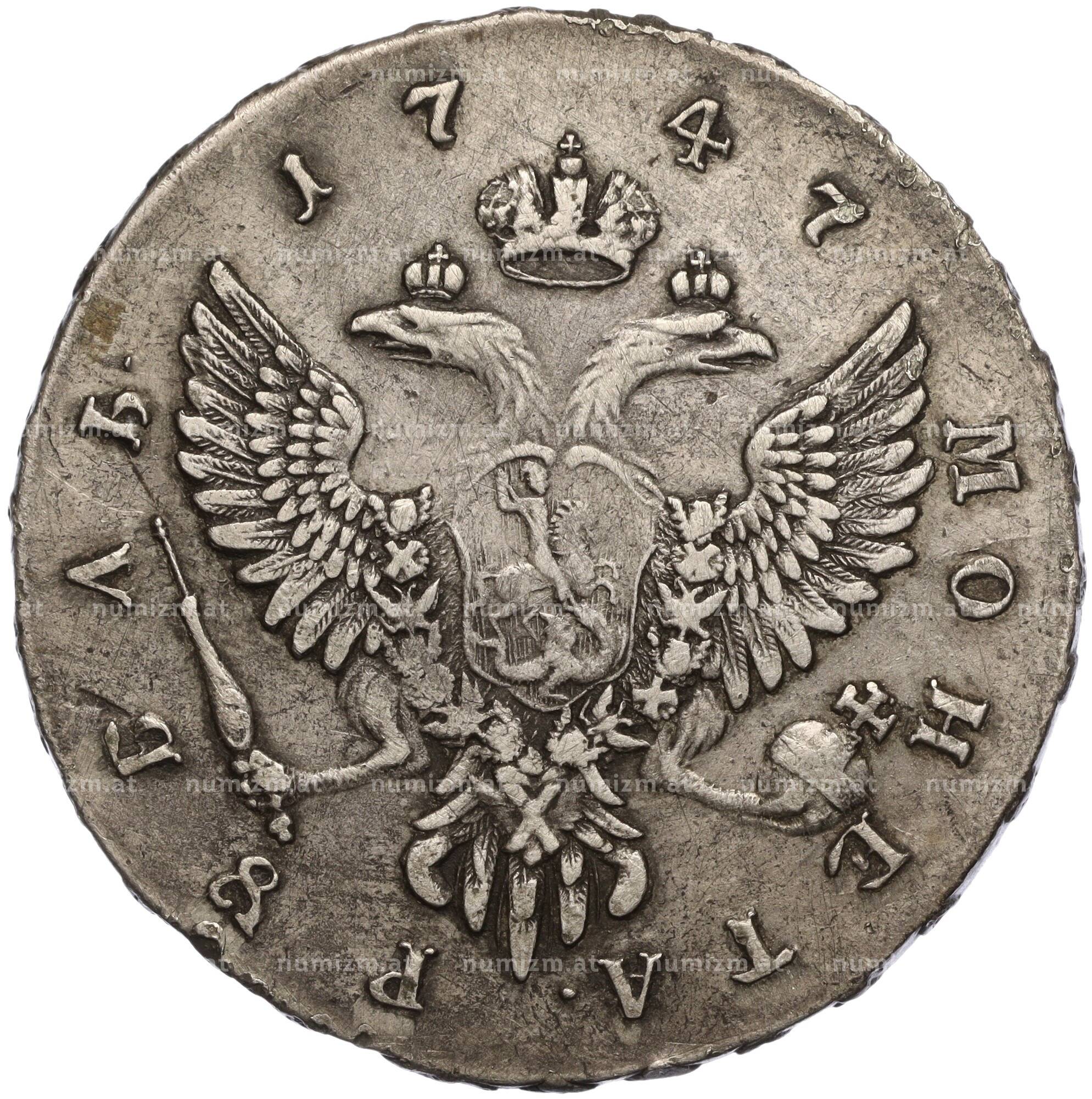 Купить 1 рубль 1747 года ММД по привлекательной цене можно в нашем интернет-магазине — Вам достаточно оформить заказ на сайте. Все монеты, представленные в каталоге, находятся в наличии на нашем складе.