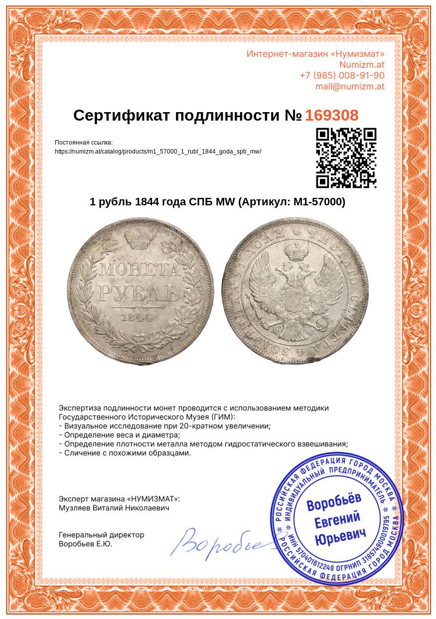 Купить 1 рубль 1844 года СПБ МW по привлекательной цене можно в нашем интернет-магазине — Вам достаточно оформить заказ на сайте. Все монеты, представленные в каталоге, находятся в наличии на нашем складе.