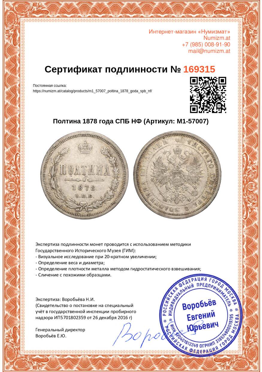 Купить Полтина 1878 года СПБ НФ по привлекательной цене можно в нашем интернет-магазине — Вам достаточно оформить заказ на сайте. Все монеты, представленные в каталоге, находятся в наличии на нашем складе.