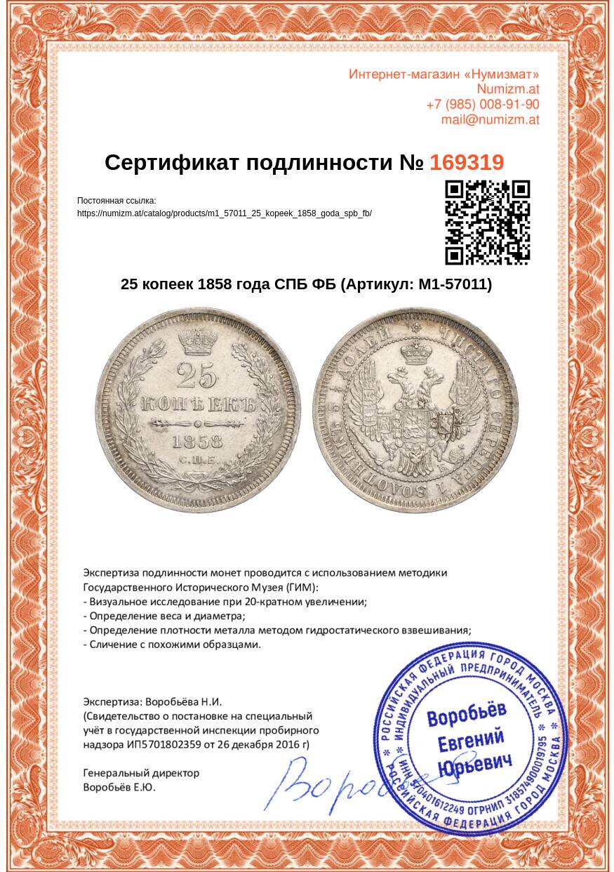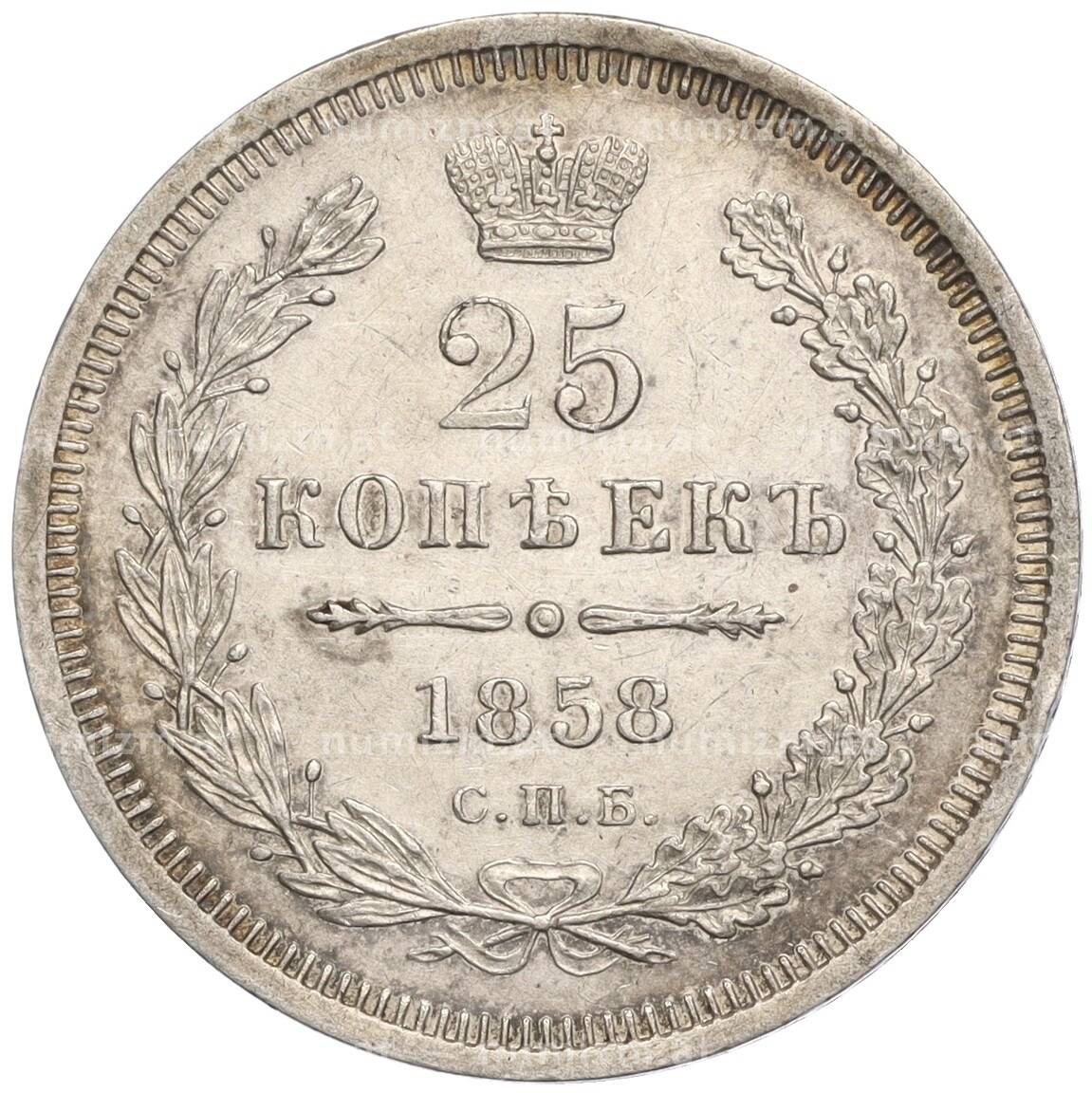 20.01.2025Интернет магазин «Нумизмат» предлагает приобрести 25 копеек 1858 года СПБ ФБ.