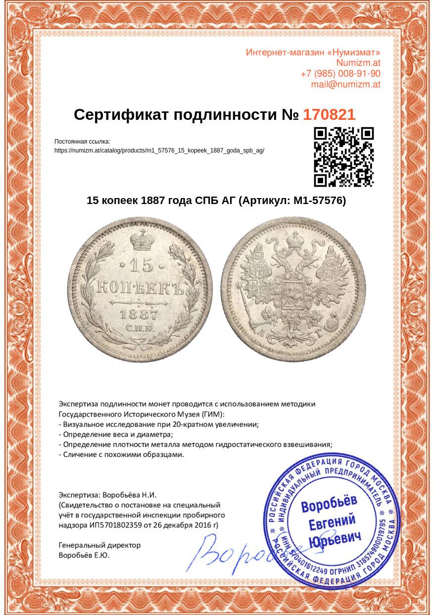 Купить 15 копеек 1887 года СПБ АГ по привлекательной цене можно в нашем интернет-магазине — Вам достаточно оформить заказ на сайте. Все монеты, представленные в каталоге, находятся в наличии на нашем складе.