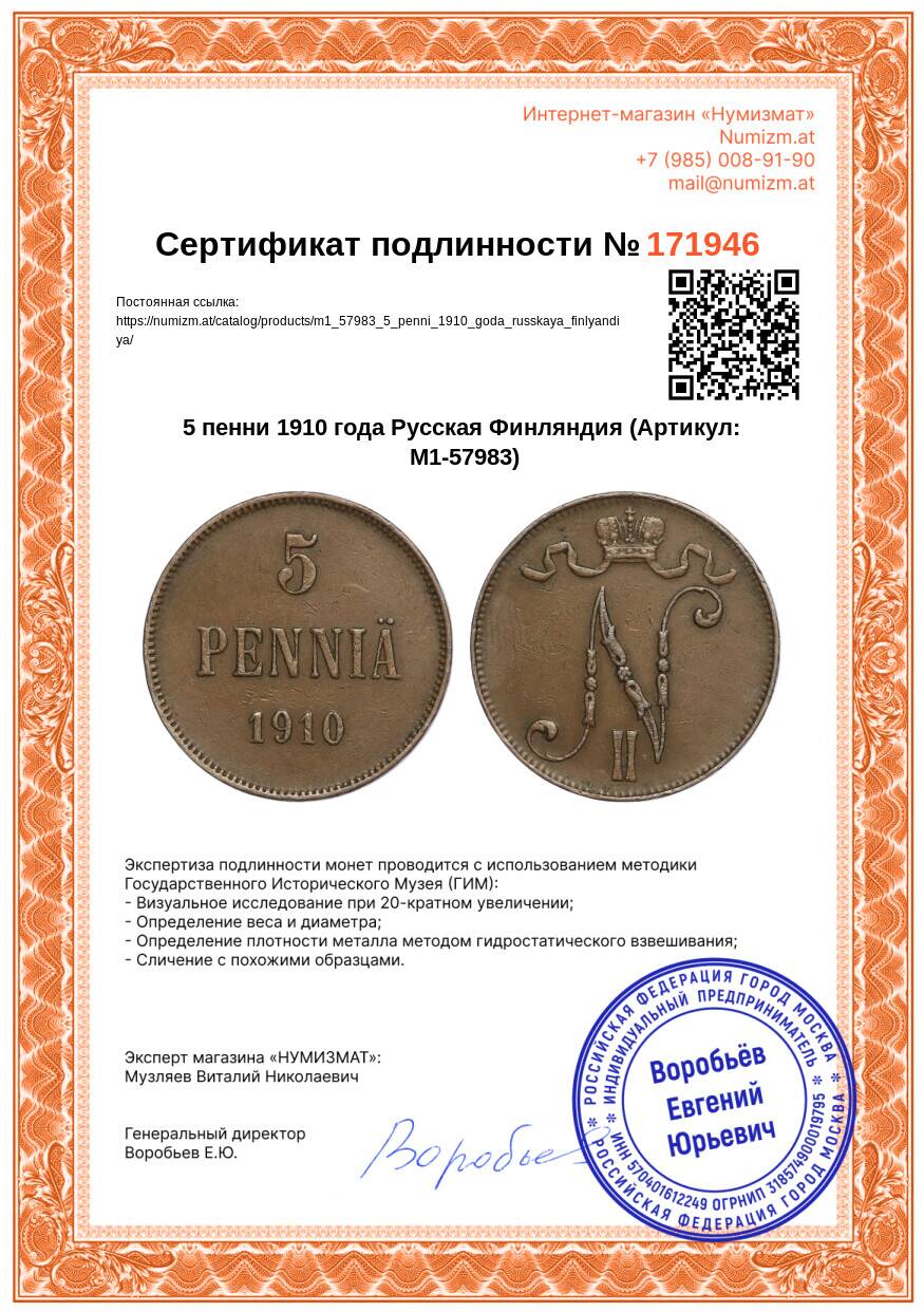 20.01.2025Интернет магазин «Нумизмат» предлагает приобрести 5 пенни 1910 года Русская Финляндия.