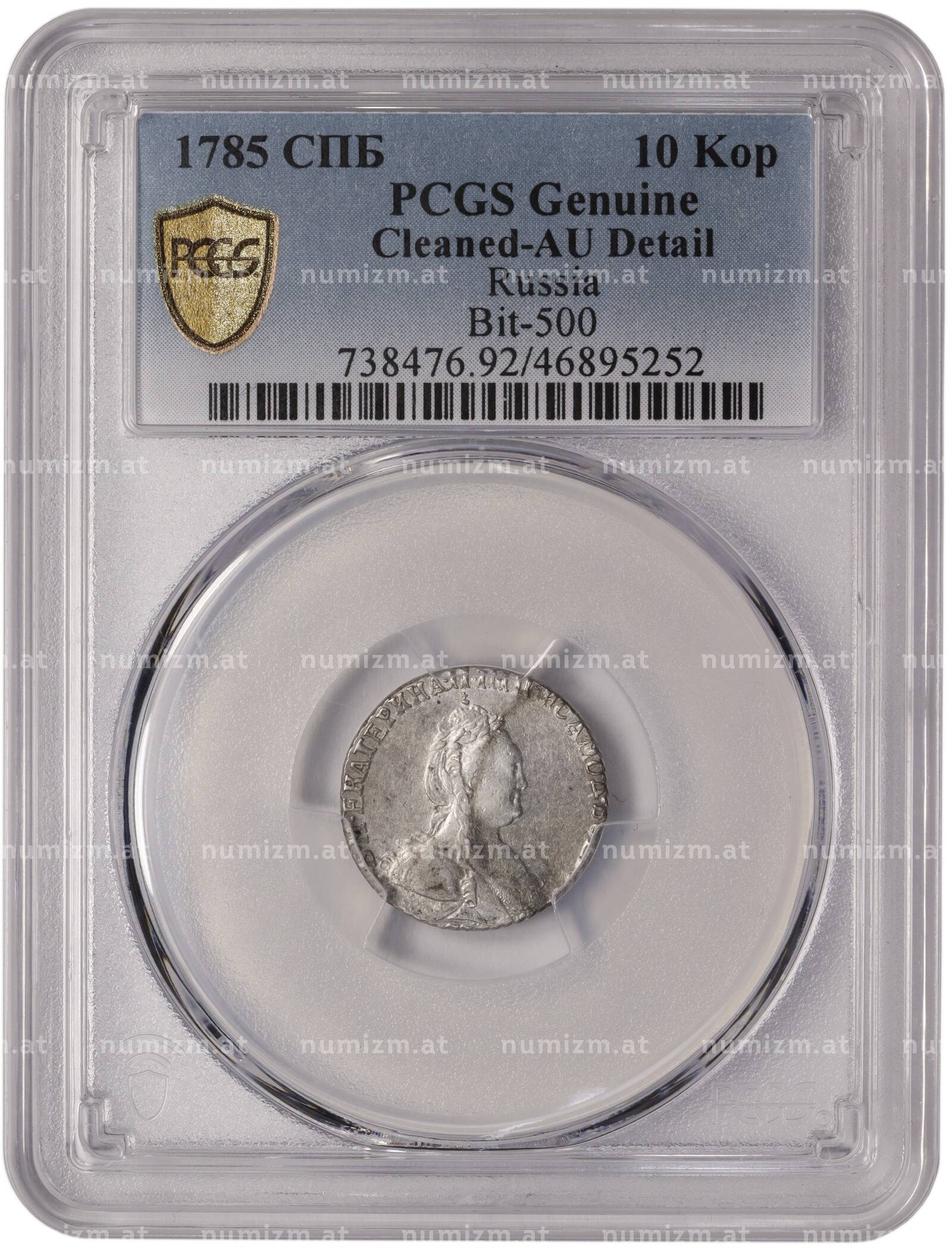 Купить Гривенник 1785 года СПБ — в слабе PCGS (AU detail) по привлекательной цене можно в нашем интернет-магазине — Вам достаточно оформить заказ на сайте. Все монеты, представленные в каталоге, находятся в наличии на нашем складе.