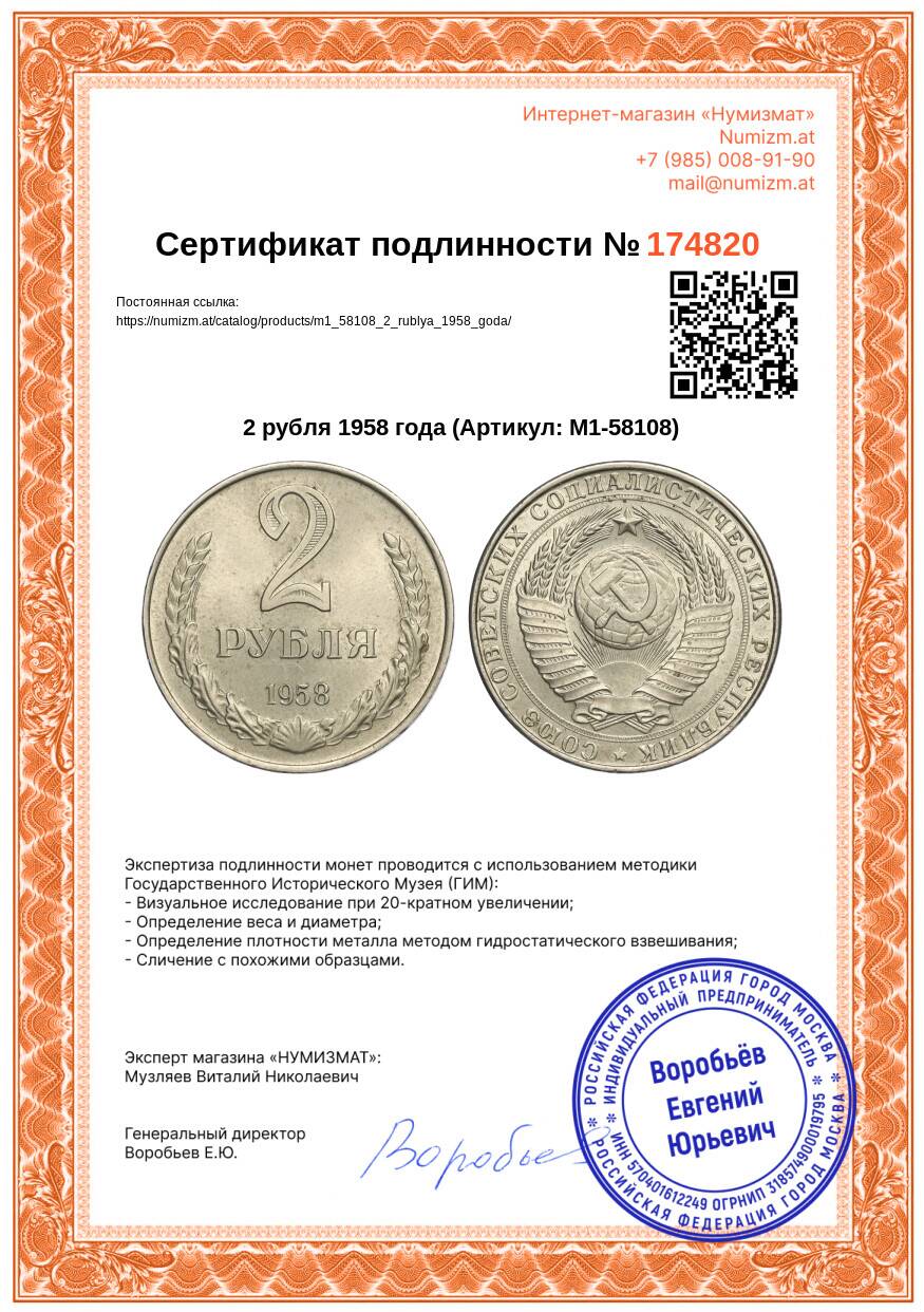 Купить 2 рубля 1958 года по привлекательной цене можно в нашем интернет-магазине — Вам достаточно оформить заказ на сайте. Все монеты, представленные в каталоге, находятся в наличии на нашем складе.