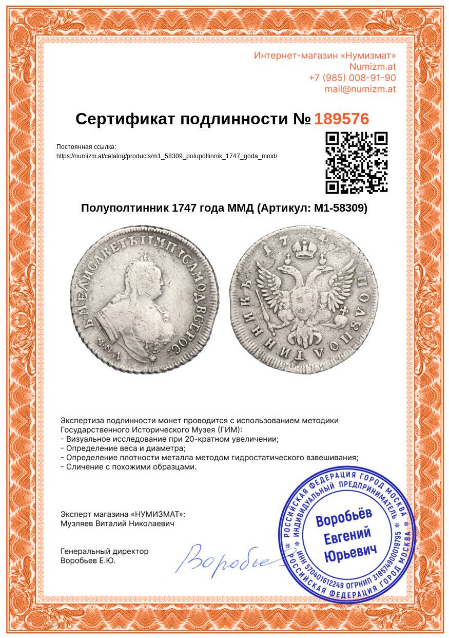Купить Полуполтинник 1747 года ММД по привлекательной цене можно в нашем интернет-магазине — Вам достаточно оформить заказ на сайте. Все монеты, представленные в каталоге, находятся в наличии на нашем складе.