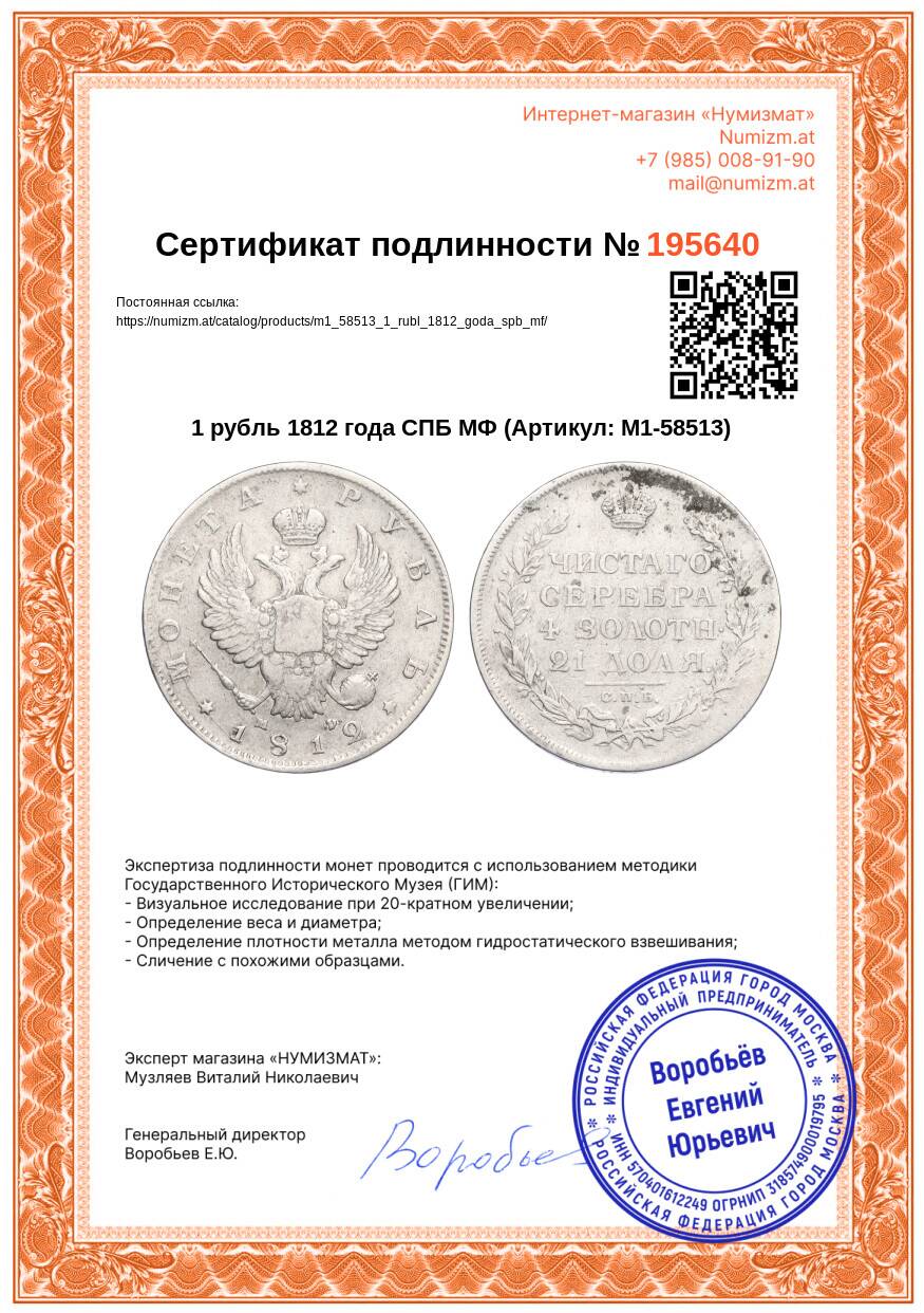 Купить 1 рубль 1812 года СПБ МФ по привлекательной цене можно в нашем интернет-магазине — Вам достаточно оформить заказ на сайте. Все монеты, представленные в каталоге, находятся в наличии на нашем складе.