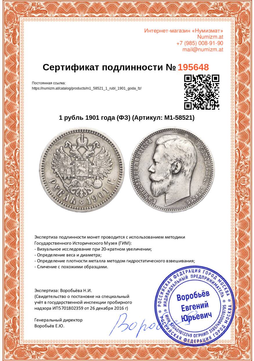20.01.2025Интернет магазин «Нумизмат» предлагает приобрести 1 рубль 1901 года (ФЗ).