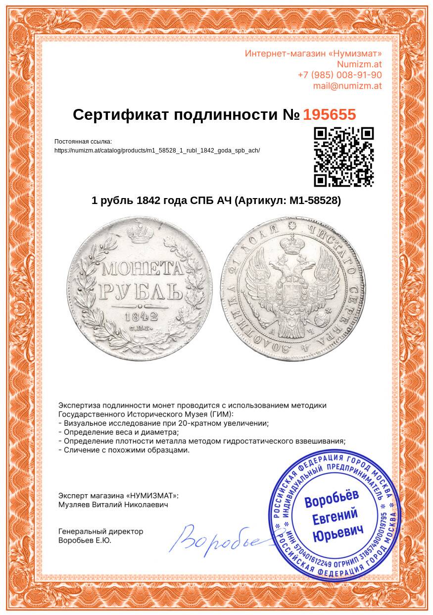 Купить 1 рубль 1842 года СПБ АЧ по привлекательной цене можно в нашем интернет-магазине — Вам достаточно оформить заказ на сайте. Все монеты, представленные в каталоге, находятся в наличии на нашем складе.