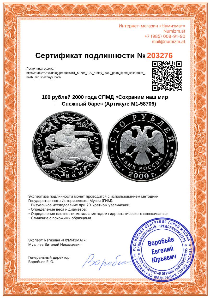 Купить 100 рублей 2000 года СПМД «Сохраним наш мир — Снежный барс» по привлекательной цене можно в нашем интернет-магазине — Вам достаточно оформить заказ на сайте. Все монеты, представленные в каталоге, находятся в наличии на нашем складе.