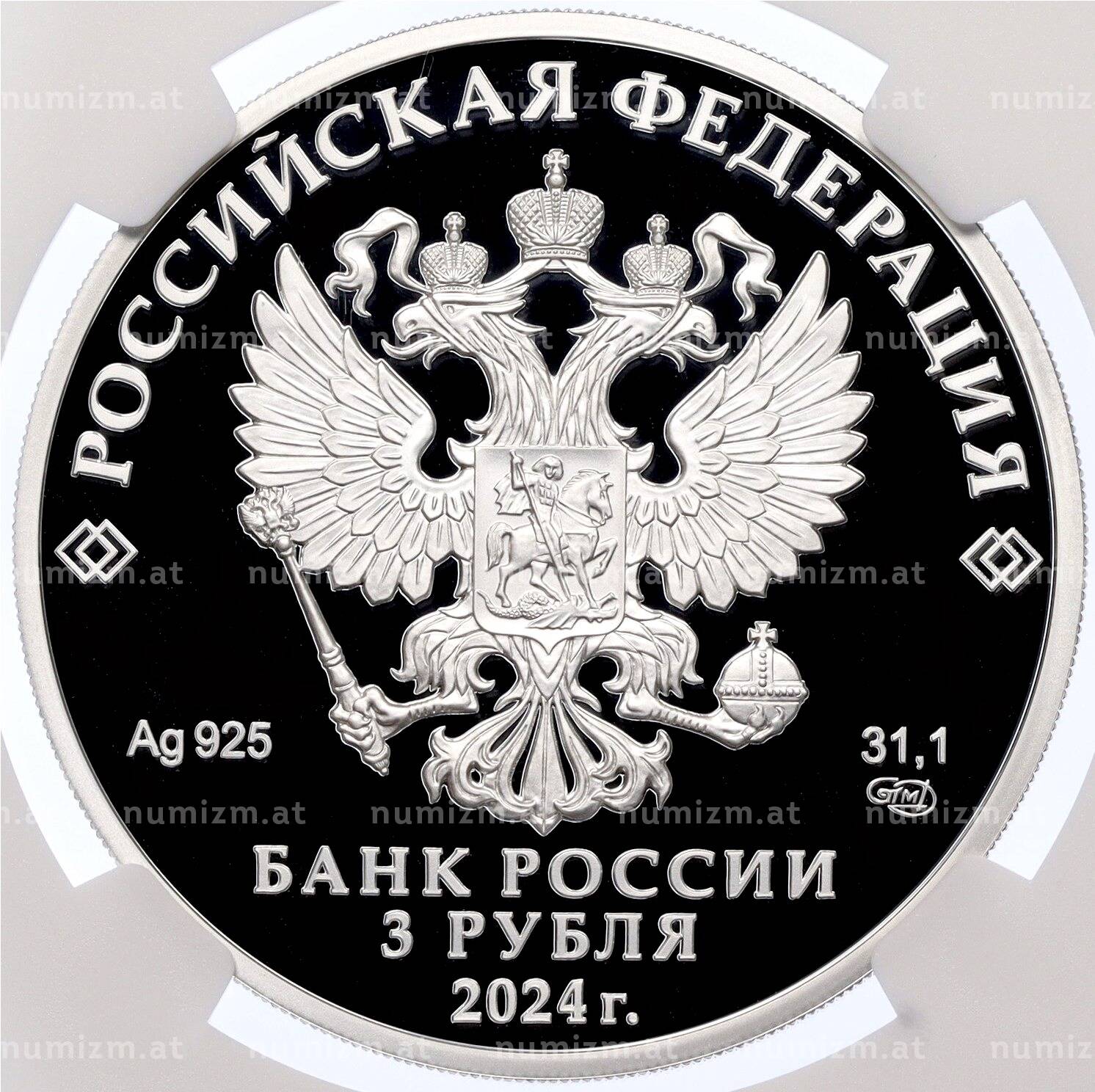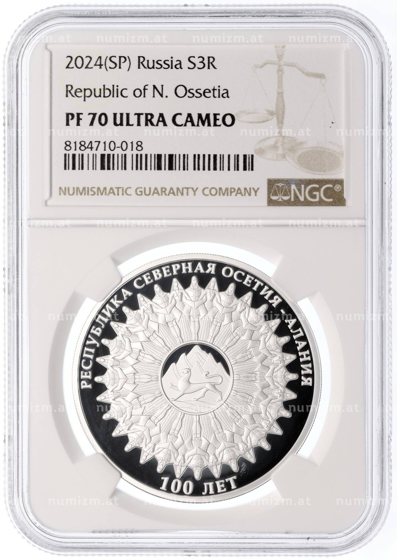 20.01.2025Интернет магазин «Нумизмат» предлагает приобрести 3 рубля 2024 года СПМД «100 лет Республике Северная Осетия — Алания» в слабе NGC (PF70 ULTRA CAMEO).