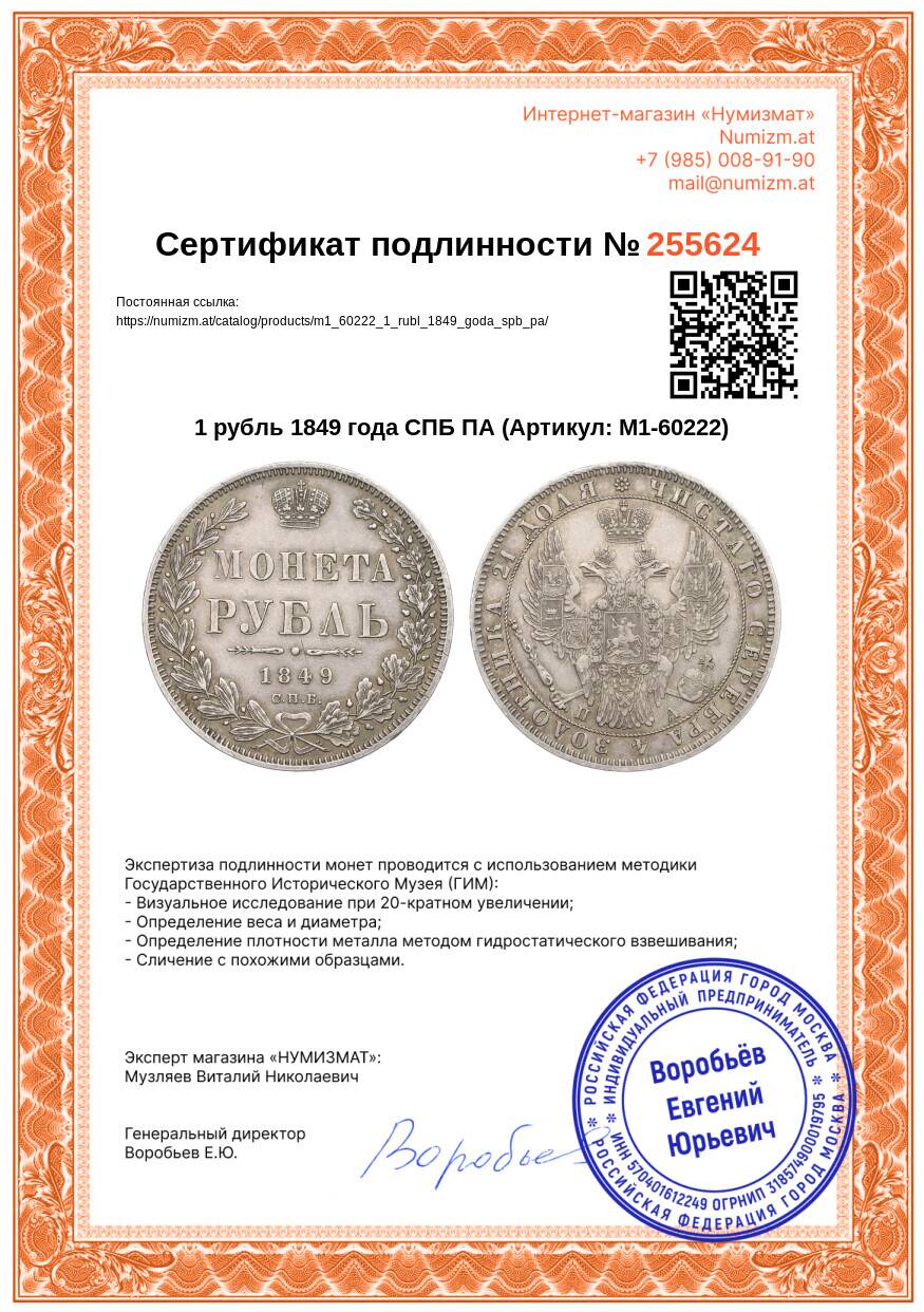 Купить 1 рубль 1849 года СПБ ПА по привлекательной цене можно в нашем интернет-магазине — Вам достаточно оформить заказ на сайте. Все монеты, представленные в каталоге, находятся в наличии на нашем складе.