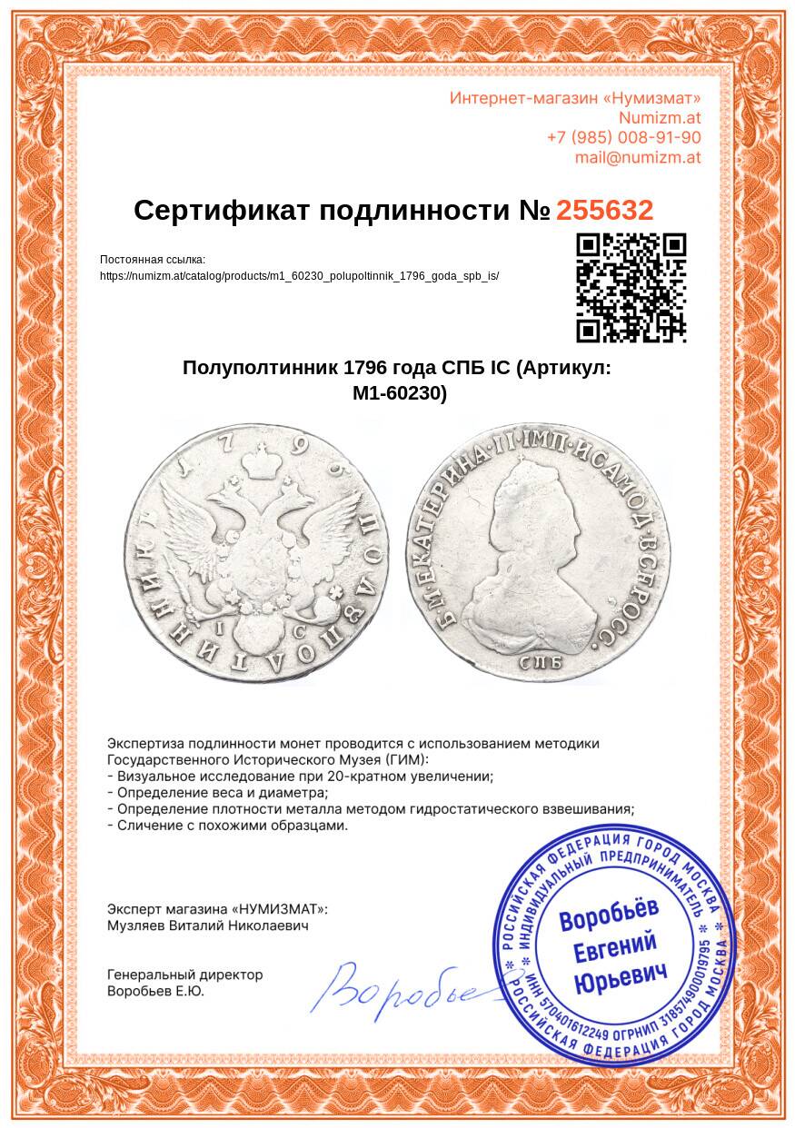 Купить Полуполтинник 1796 года СПБ IС по привлекательной цене можно в нашем интернет-магазине — Вам достаточно оформить заказ на сайте. Все монеты, представленные в каталоге, находятся в наличии на нашем складе.