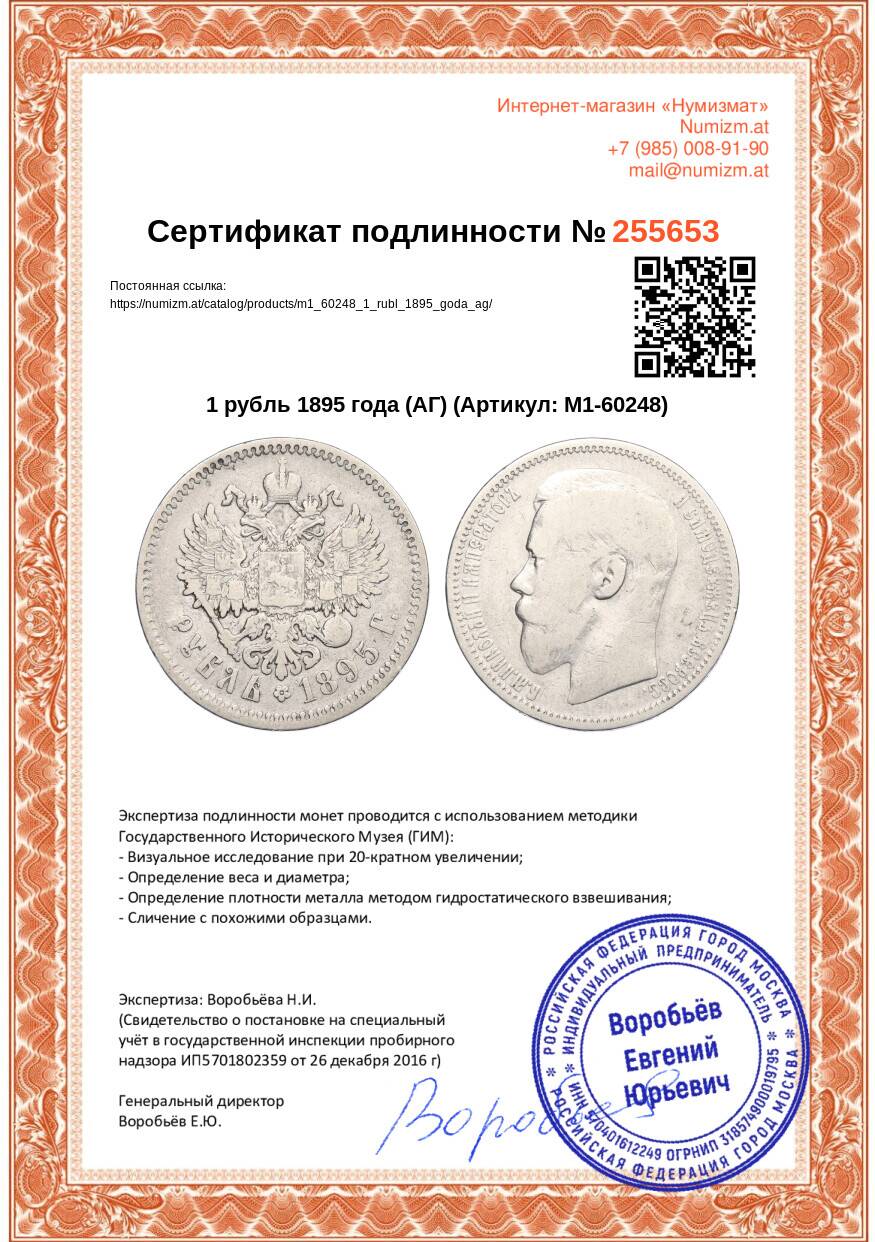 Купить 1 рубль 1895 года (АГ) по привлекательной цене можно в нашем интернет-магазине — Вам достаточно оформить заказ на сайте. Все монеты, представленные в каталоге, находятся в наличии на нашем складе.