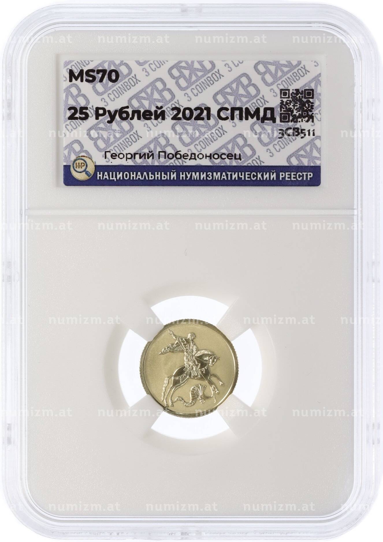 Купить 25 рублей 2021 года СПМД «Георгий Победоносец» в слабе ННР (MS70) по привлекательной цене можно в нашем интернет-магазине — Вам достаточно оформить заказ на сайте. Все монеты, представленные в каталоге, находятся в наличии на нашем складе.