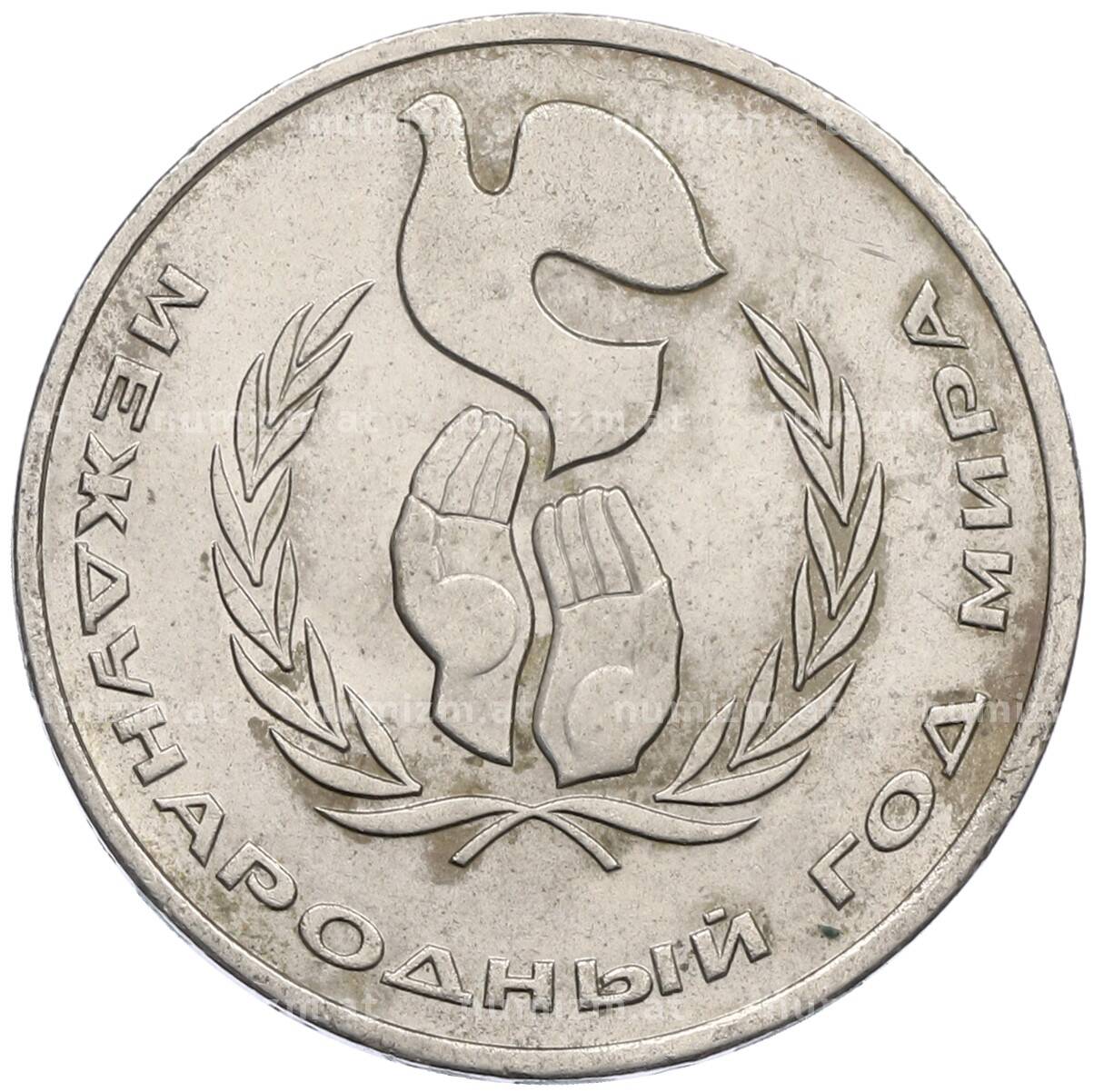 Монета 1 рубль 1986 года «Международный год мира» (Артикул: M1-62238): подробные характеристики, качественные фотографии в высоком разрешении, низкая цена.