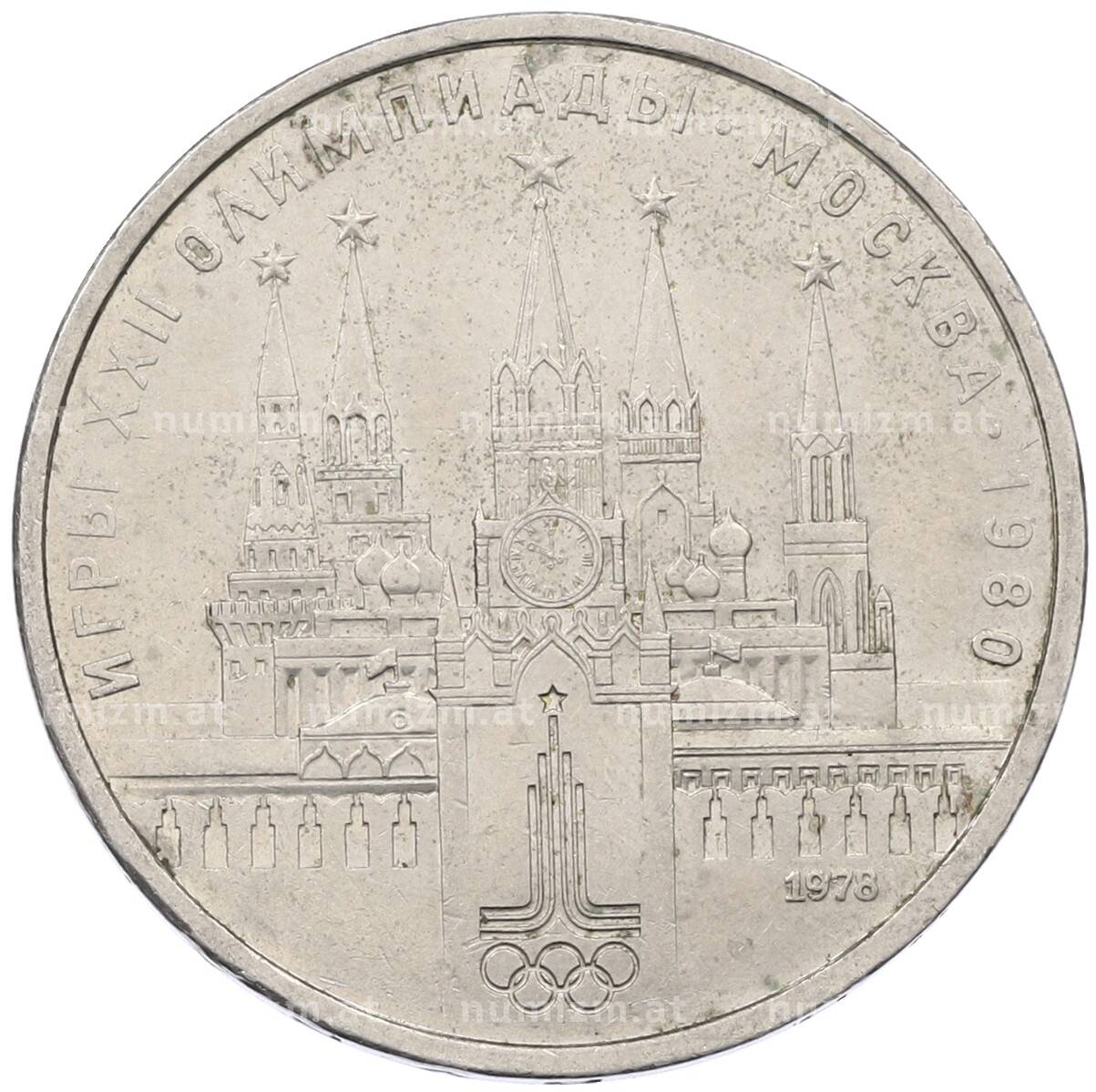 Интернет магазин «Нумизмат» предлагает приобрести 1 рубль 1978 года «XXII летние Олимпийские Игры 1980 в Москве (Олимпиада-80) — Кремль» Без ошибки на циферблате (Цифра IV правильная).