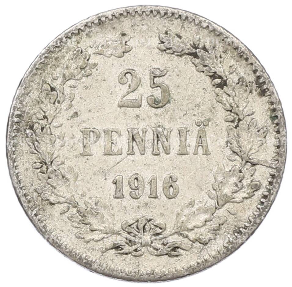 Монета 25 пенни 1916 года Русская Финляндия (Артикул: M1-62623): подробные характеристики, качественные фотографии в высоком разрешении, низкая цена.