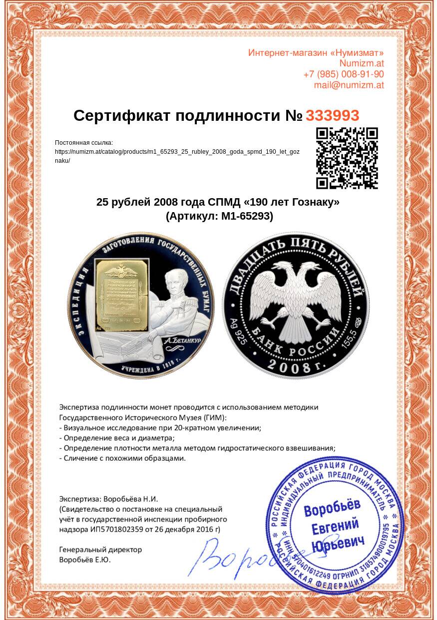 20.01.2025Интернет магазин «Нумизмат» предлагает приобрести 25 рублей 2008 года СПМД «190 лет Гознаку».
