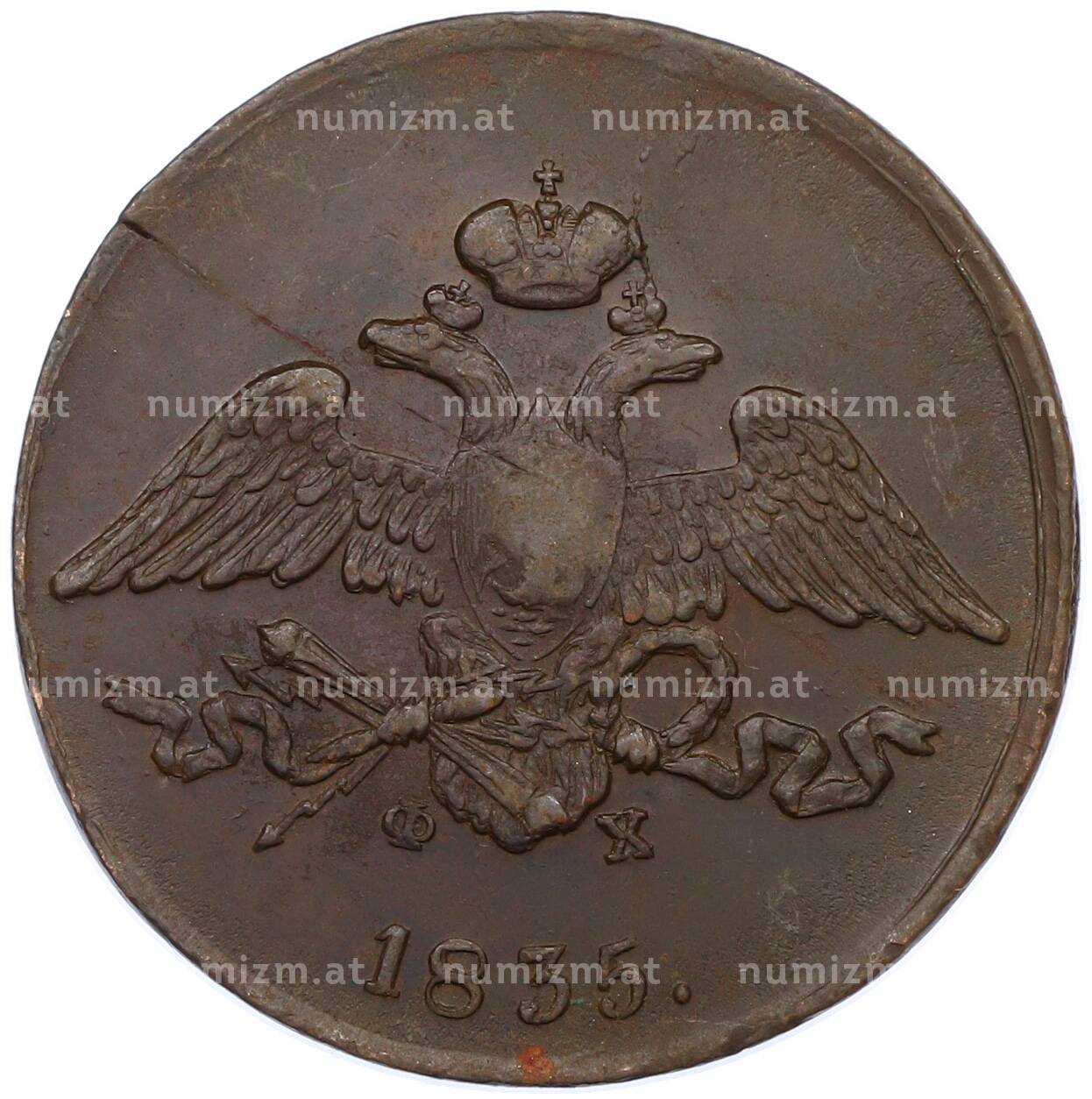 20.01.2025Интернет магазин «Нумизмат» предлагает приобрести 5 копеек 1835 года ЕМ ФХ.
