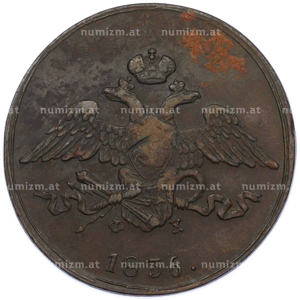 20.01.2025Интернет магазин «Нумизмат» предлагает приобрести 5 копеек 1836 года ЕМ ФХ.