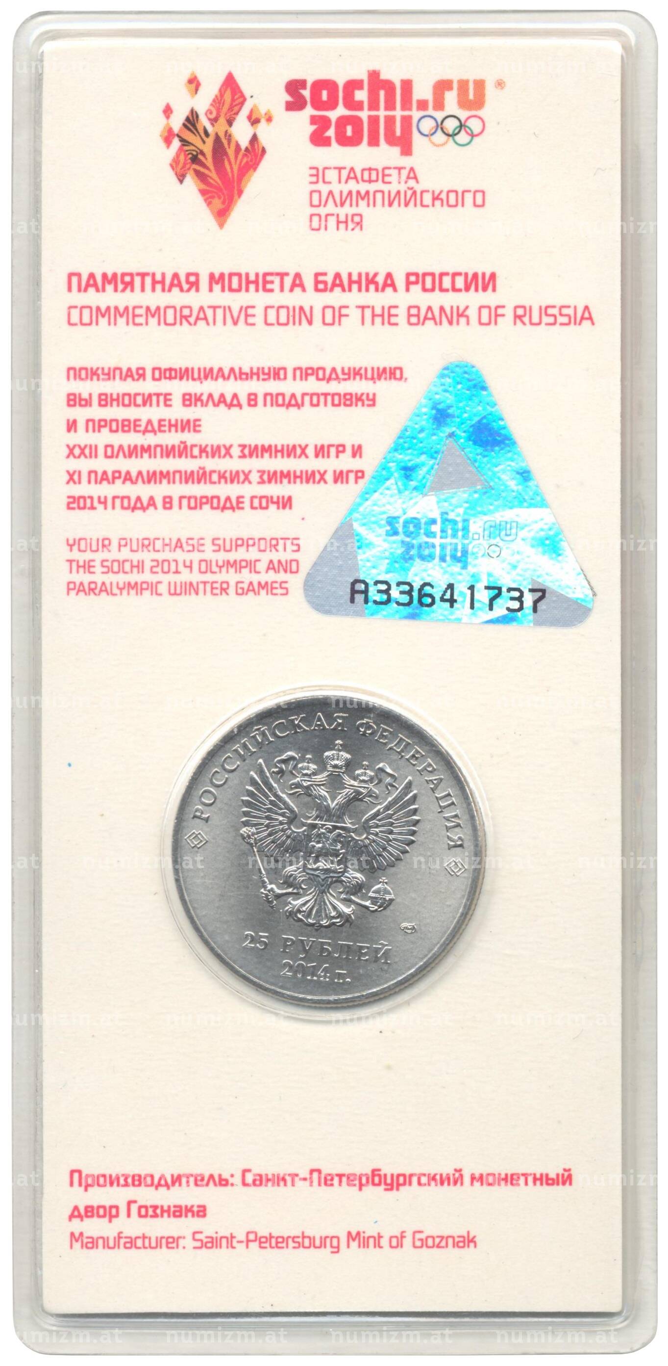 20.01.2025Интернет магазин «Нумизмат» предлагает приобрести 25 рублей 2014 года СПМД «XXII зимние Олимпийские Игры 2014 в Сочи — Факел» (Цветная) АКЦИЯ (Для заказов на сумму от 6000 р).