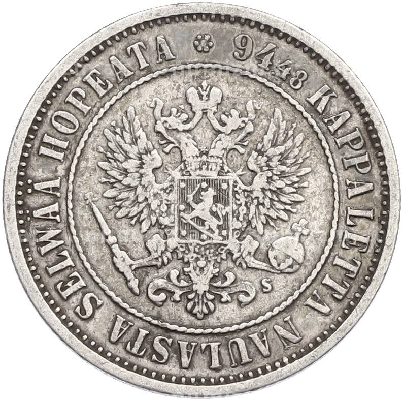 Монета 1 марка 1874 года Русская Финляндия (Артикул: M1-66533): подробные характеристики, качественные фотографии в высоком разрешении, низкая цена.