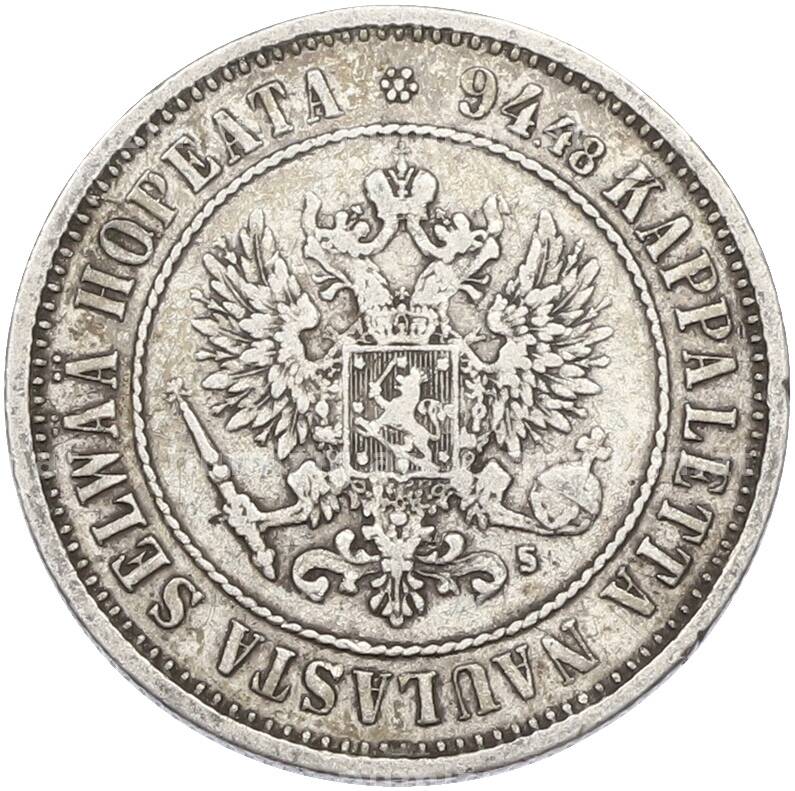 Монета 1 марка 1874 года Русская Финляндия (Артикул: M1-66572): подробные характеристики, качественные фотографии в высоком разрешении, низкая цена.