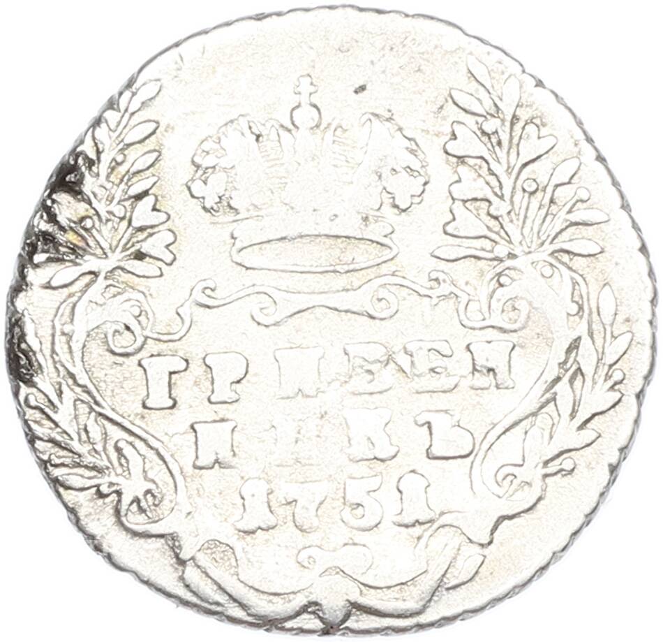 Купить Гривенник 1751 года по привлекательной цене можно в нашем интернет-магазине — Вам достаточно оформить заказ на сайте. Все монеты, представленные в каталоге, находятся в наличии на нашем складе.