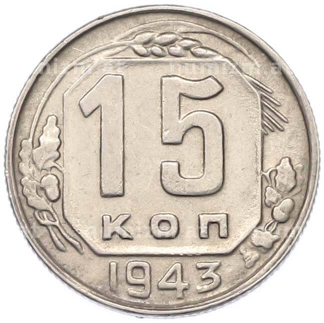 Монета 15 копеек 1943 года (Артикул: M1-67103): подробные характеристики, качественные фотографии в высоком разрешении, низкая цена.