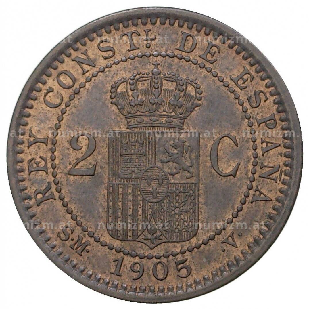 Монета 2 сентимо 1905 года Испания (Артикул: M2-38971): подробные характеристики, качественные фотографии в высоком разрешении, низкая цена.