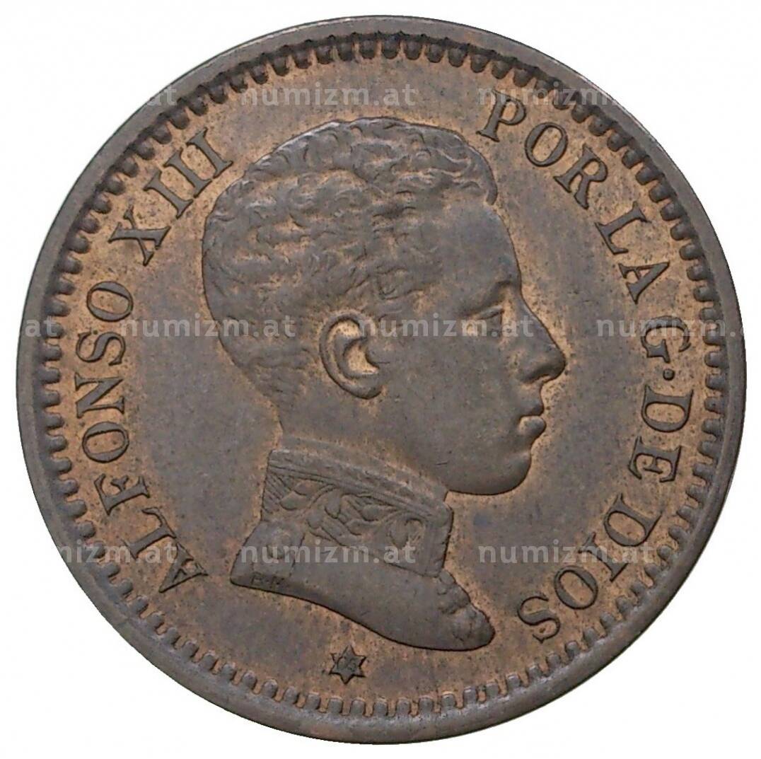 Интернет магазин «Нумизмат» предлагает приобрести 2 сентимо 1905 года Испания.