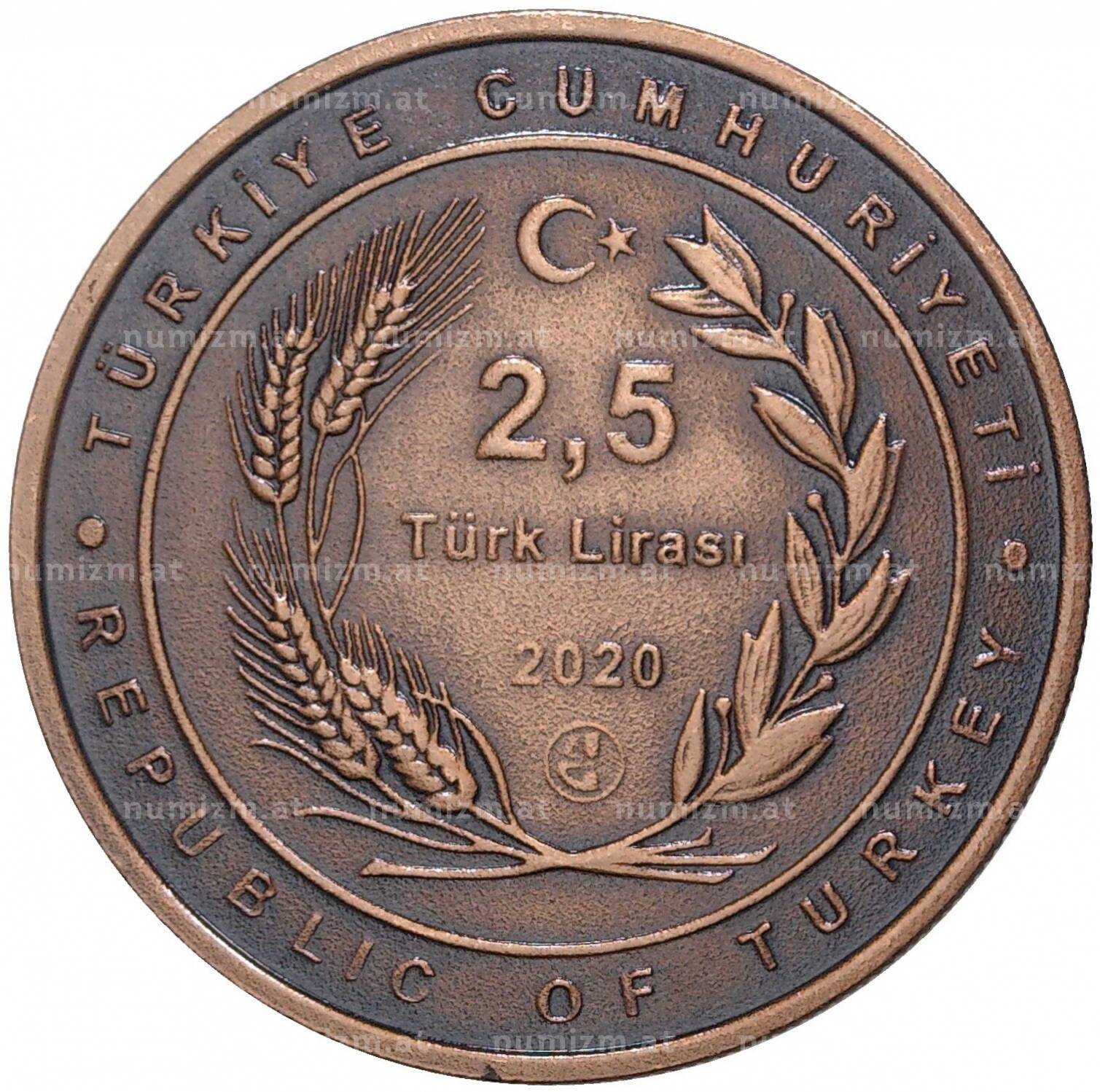 20.01.2025Интернет магазин «Нумизмат» предлагает приобрести 2.5 лиры 2020 года Турция «100 лет агентству Анадолу».