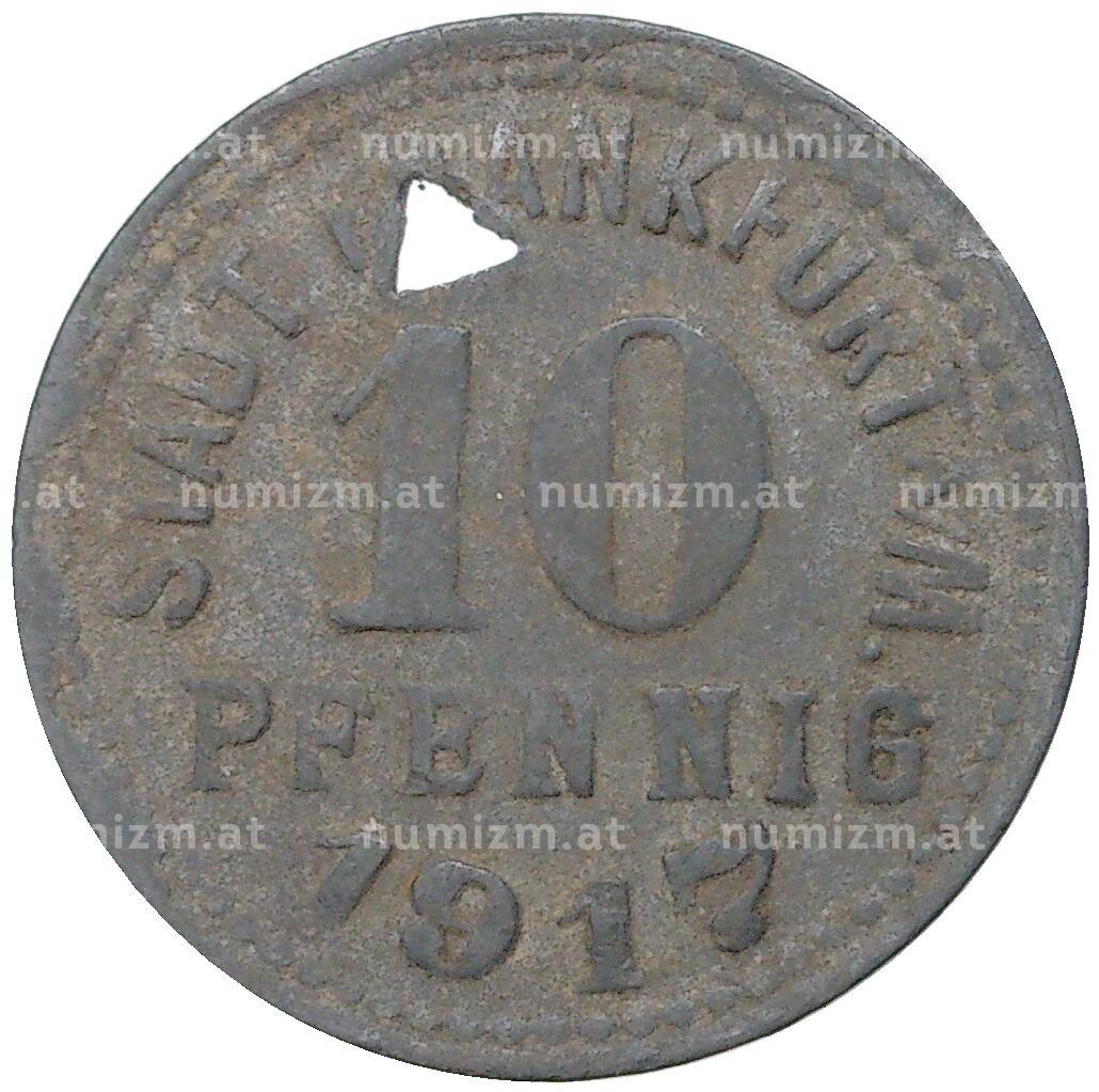Монета 10 пфеннигов 1917 года Германия — город Франкфурт-на-Майне (Нотгельд) (Артикул: M2-57072): подробные характеристики, качественные фотографии в высоком разрешении, низкая цена.