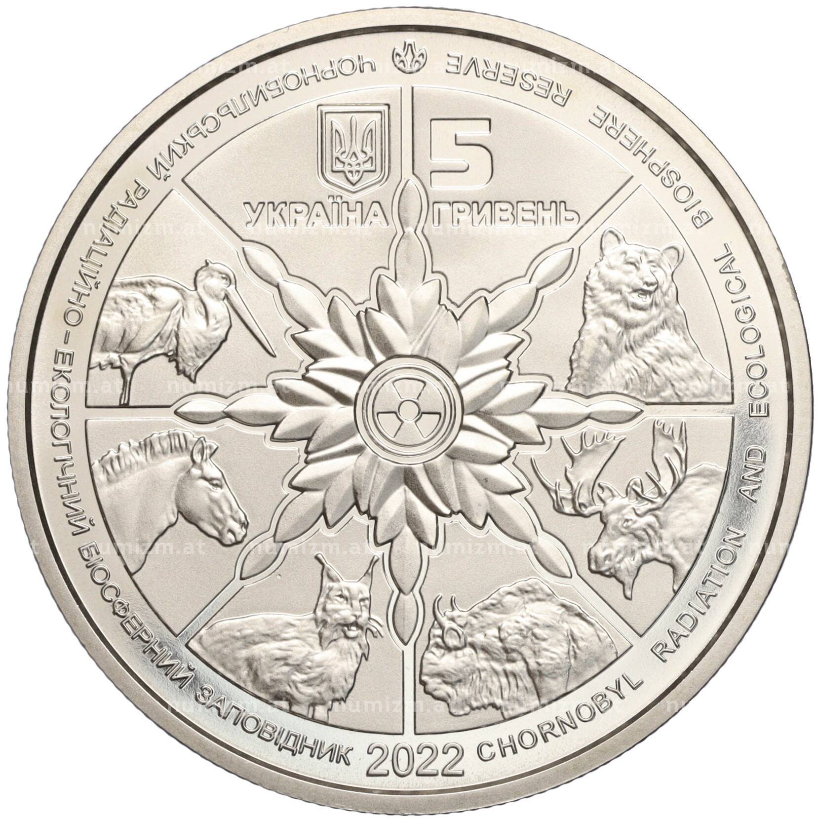 20.01.2025Интернет магазин «Нумизмат» предлагает приобрести 5 гривен 2022 года Украина «Чернобыльский радиационно-экологический биосферный заповедник — Бурый медведь».